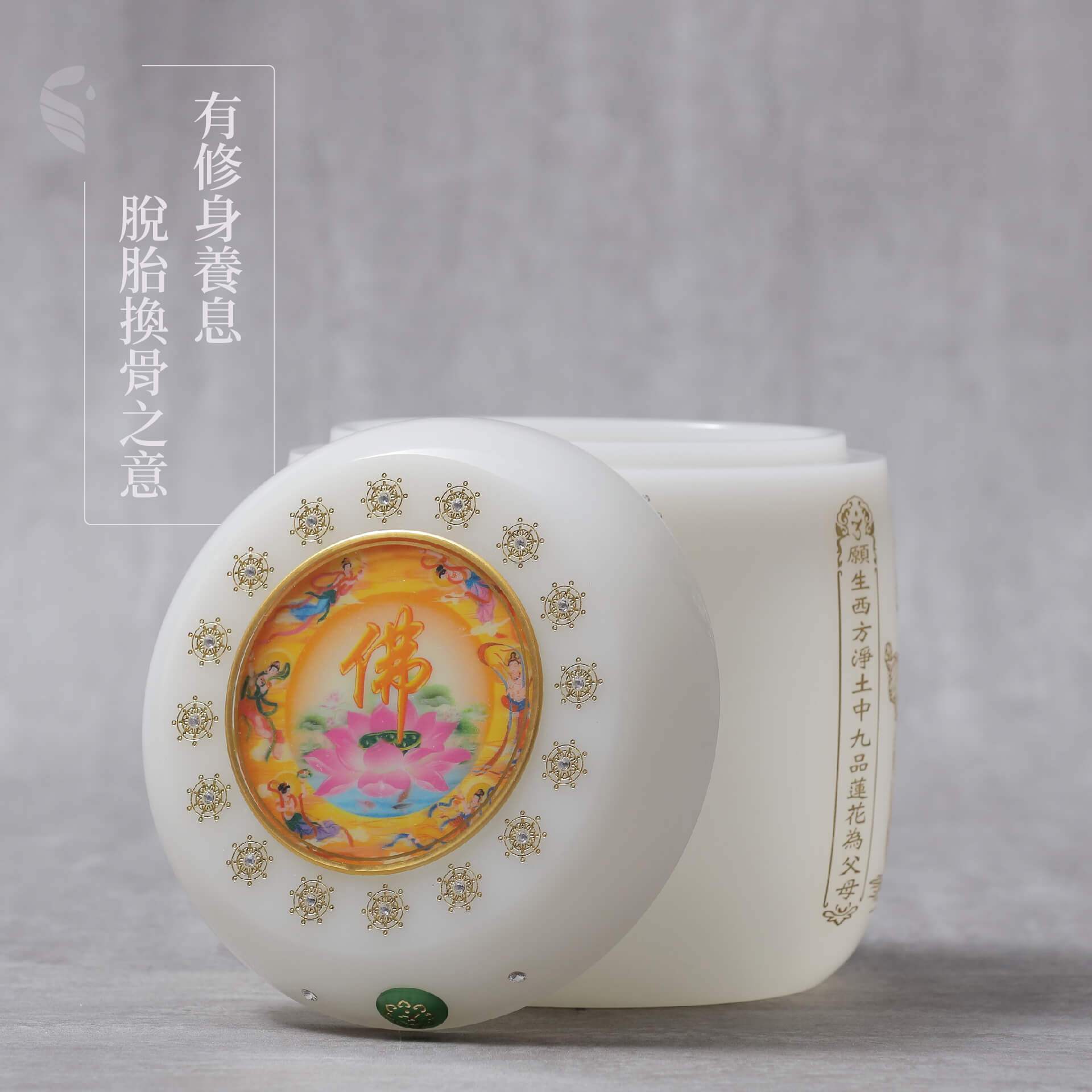 佛教七寶之一,浴火洗禮,經層層熔製而成,故有修身養息,脫胎換骨之意。