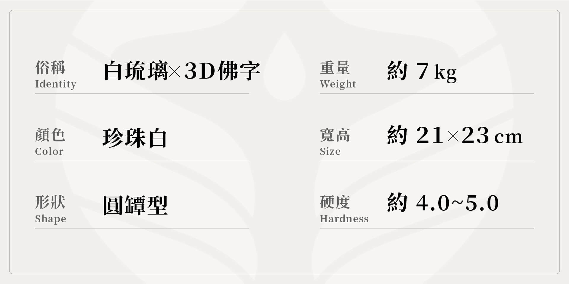 形狀:圓罈型/重量:約7kg/寬高:21x21x23 cm/硬度:約4.0~4.5/加工地:台灣