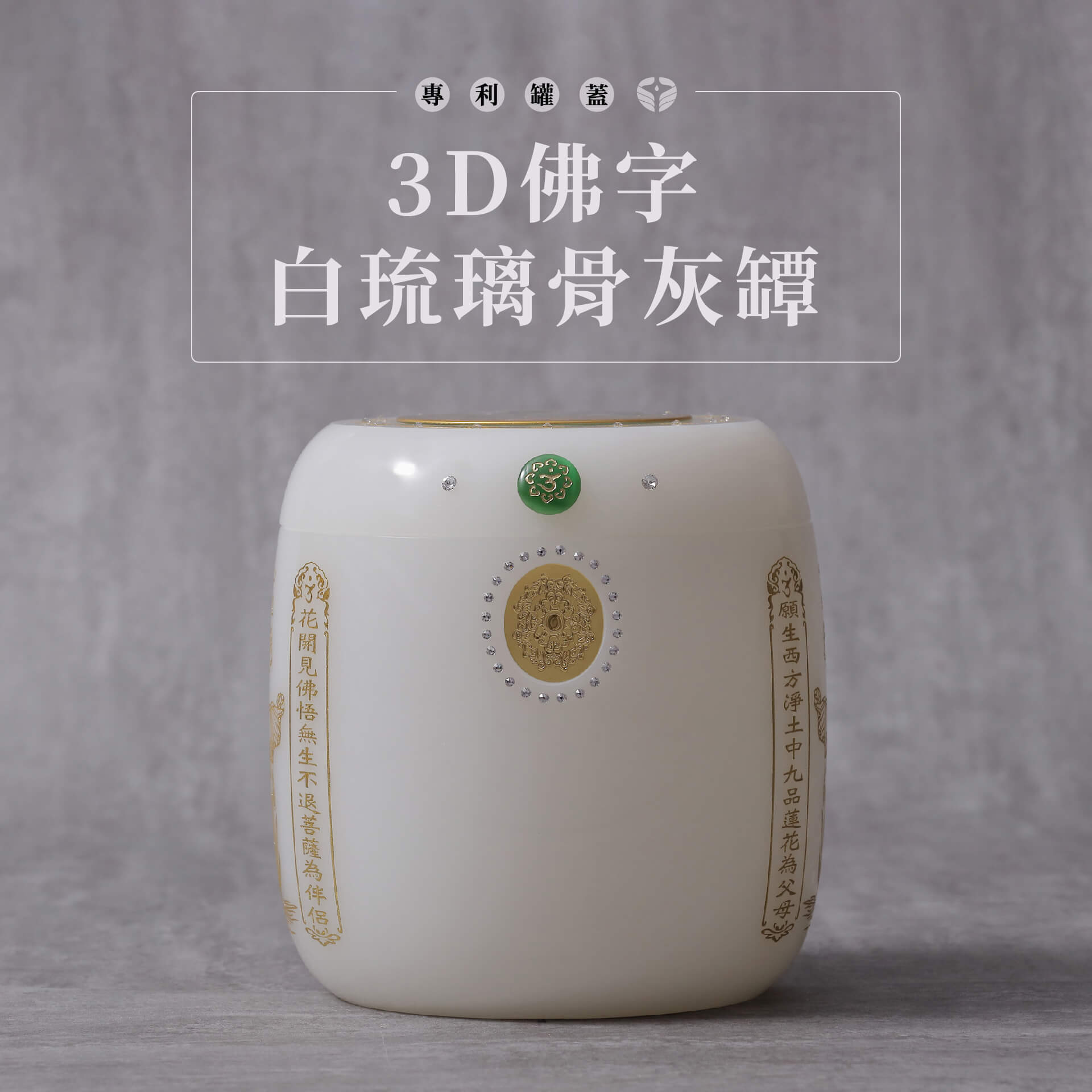 【專利罐系列】3D佛字-白琉璃心經骨灰罈