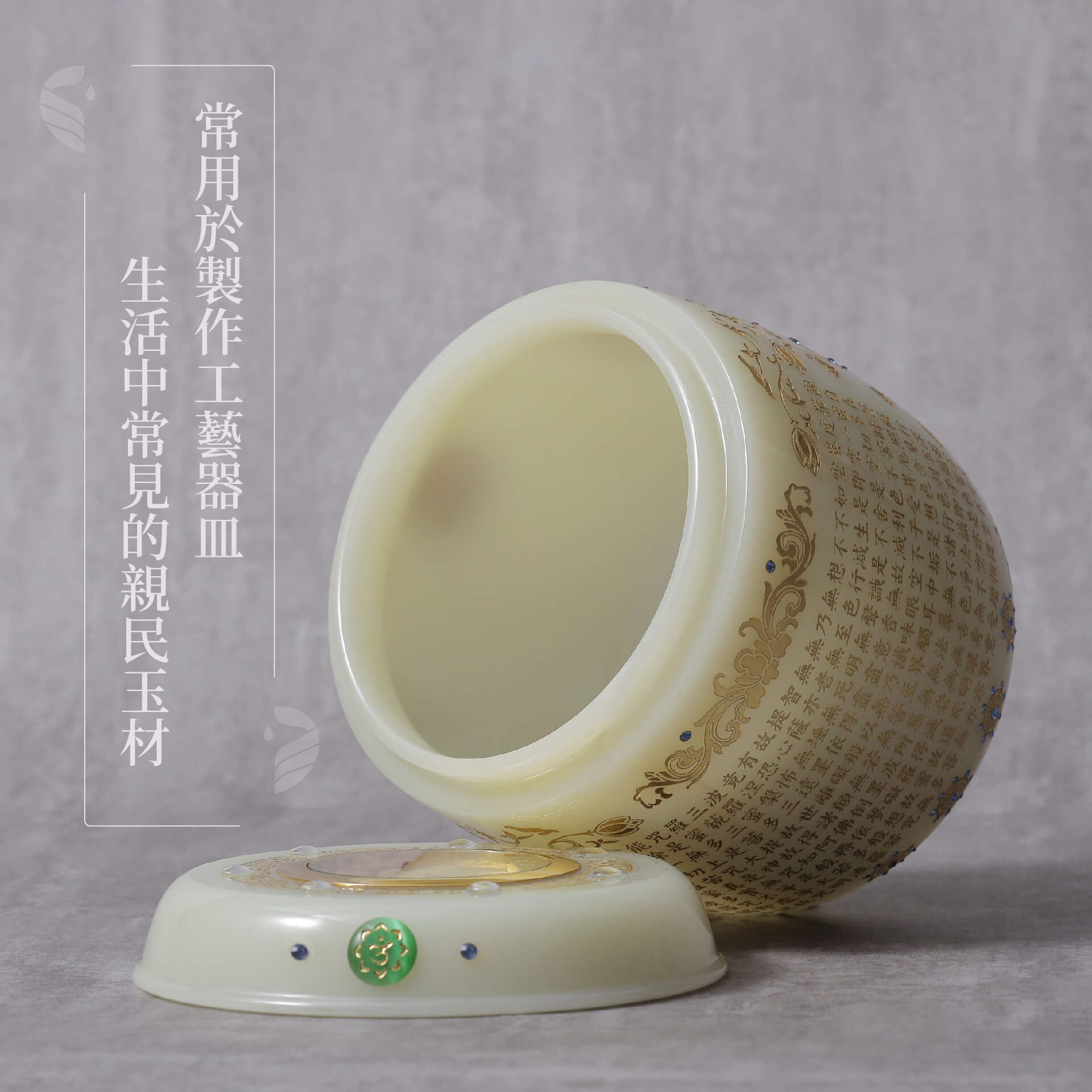 整體具有溫潤油亮感,常用於製作工藝器皿,是生活中常見的親民玉材。