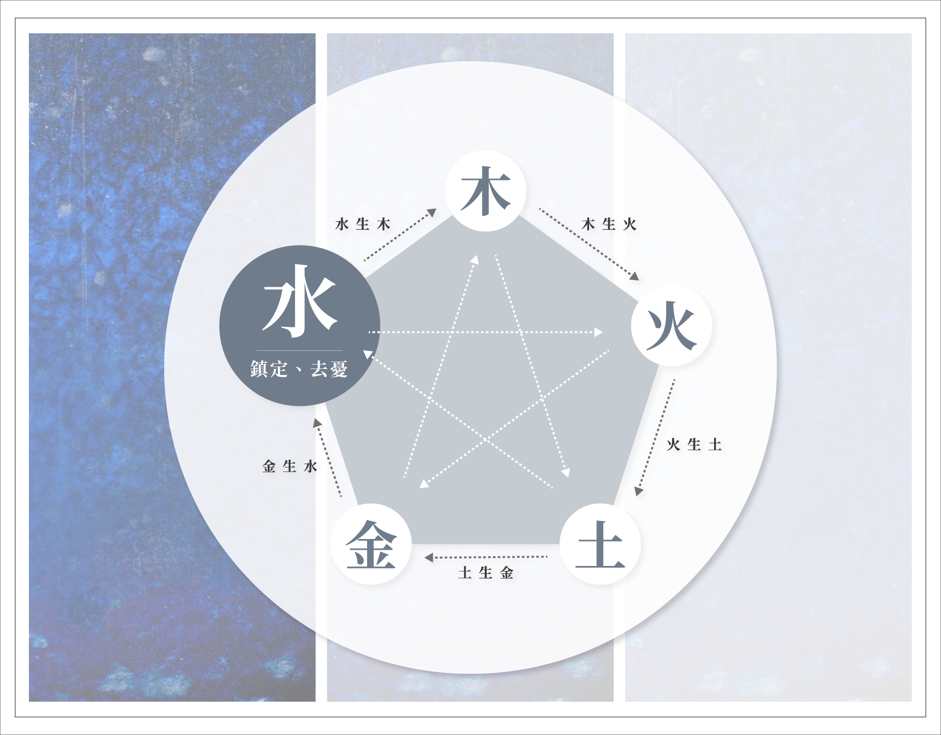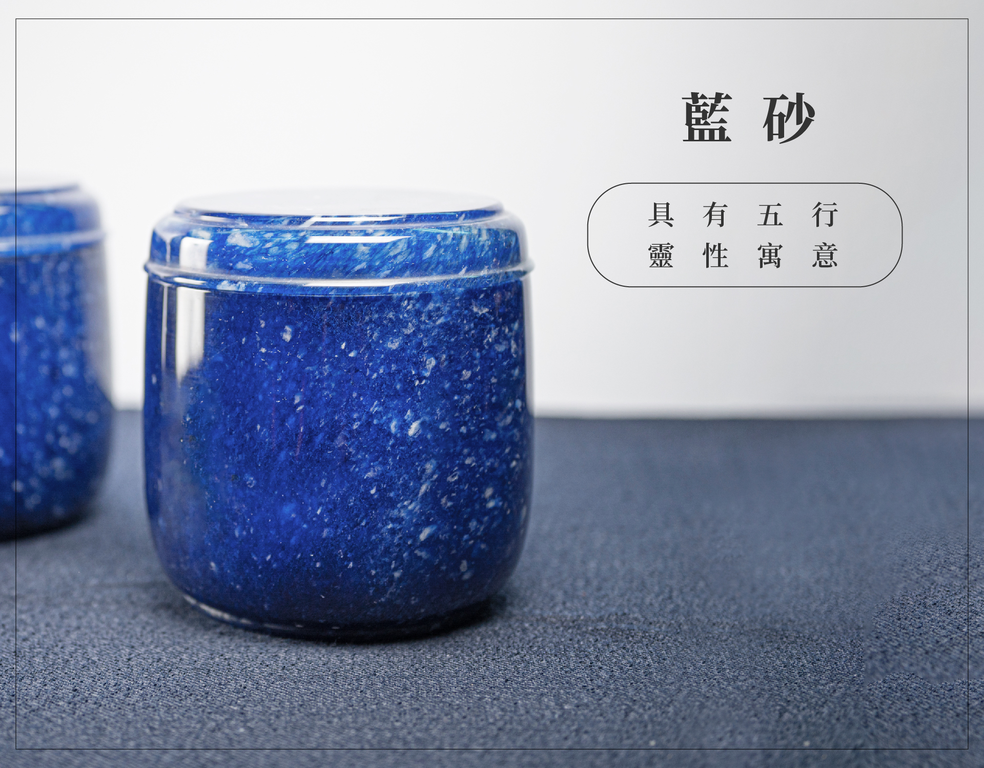 不同色澤被賦予不同的五行寓意,藍砂水晶象徵了鎮定、去憂,願逝者來世無憂。