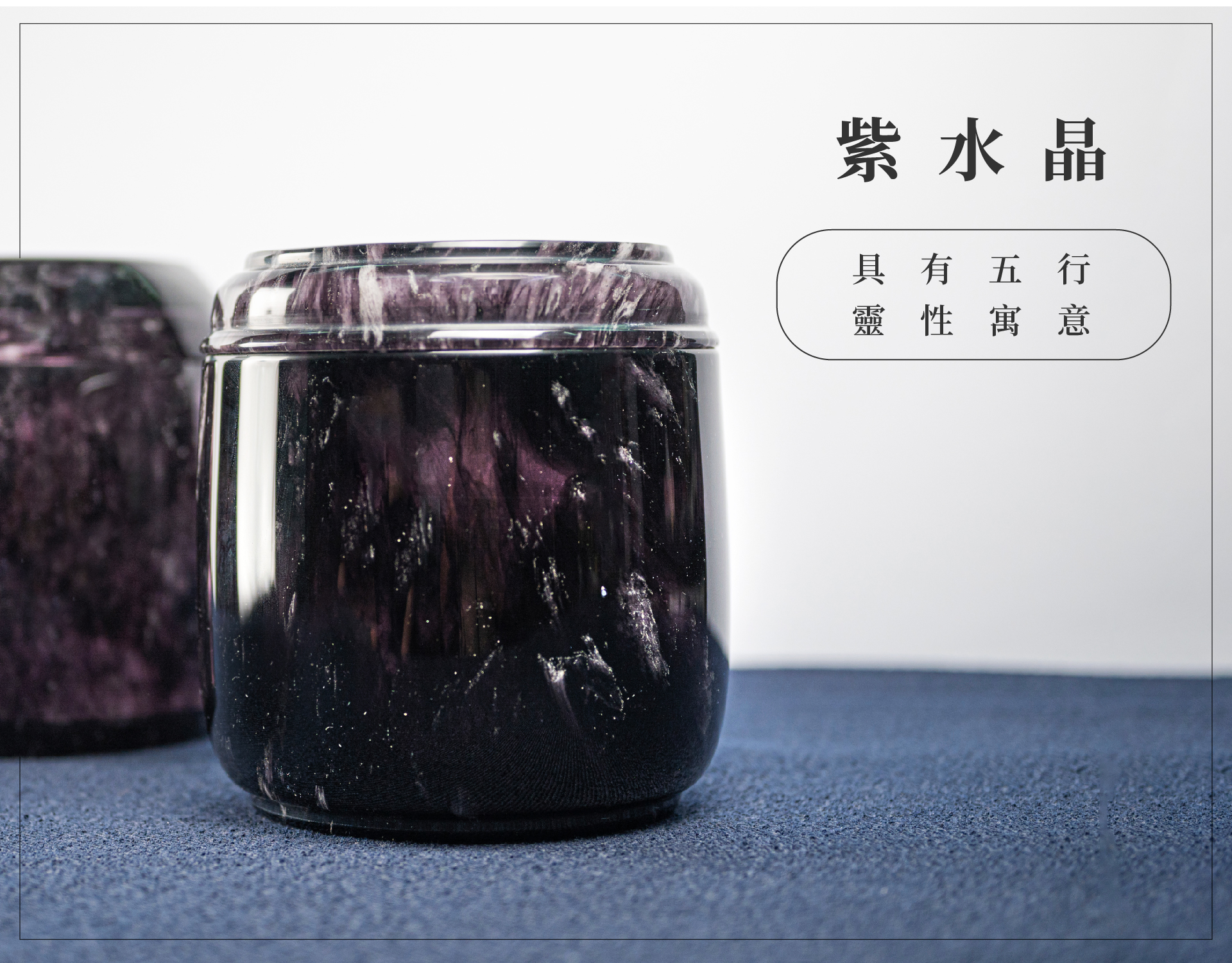 不同色澤被賦予不同的五行寓意,紫水晶象徵了寧靜、平和,願逝者祥和度過來世。