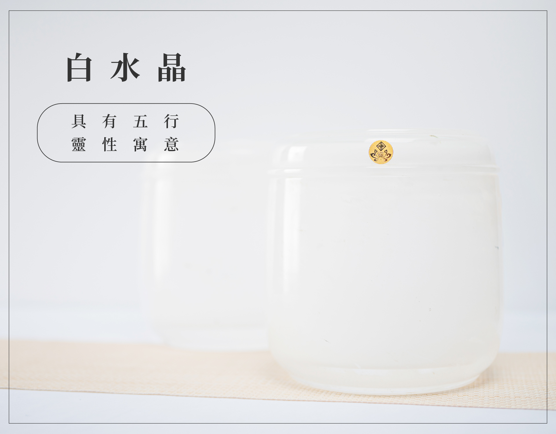 不同色澤被賦予不同的五行寓意,白水晶象徵了淨化、平衡,願逝者來世純澈無暇。