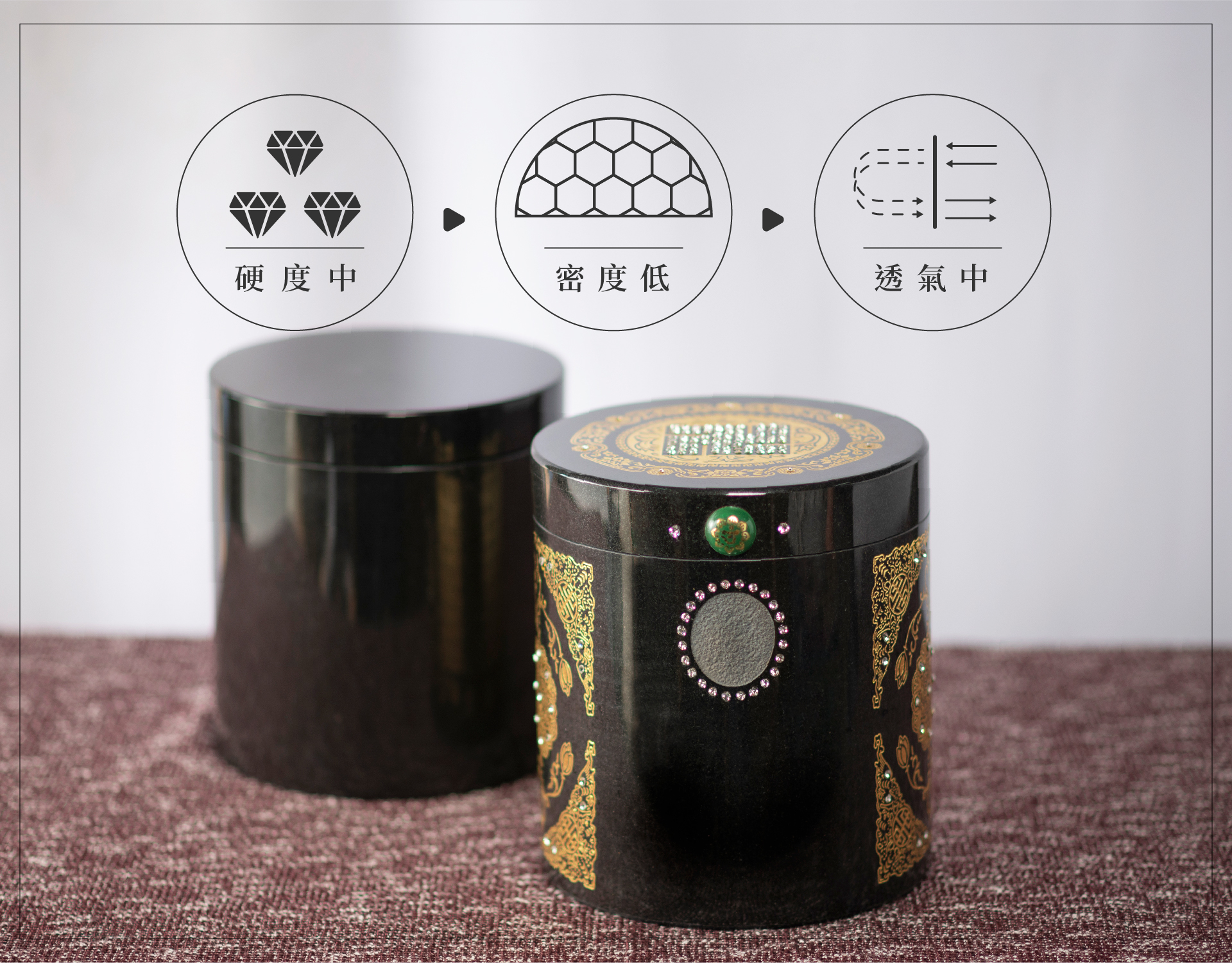 【岩石系列】黑花崗素面骨灰罈